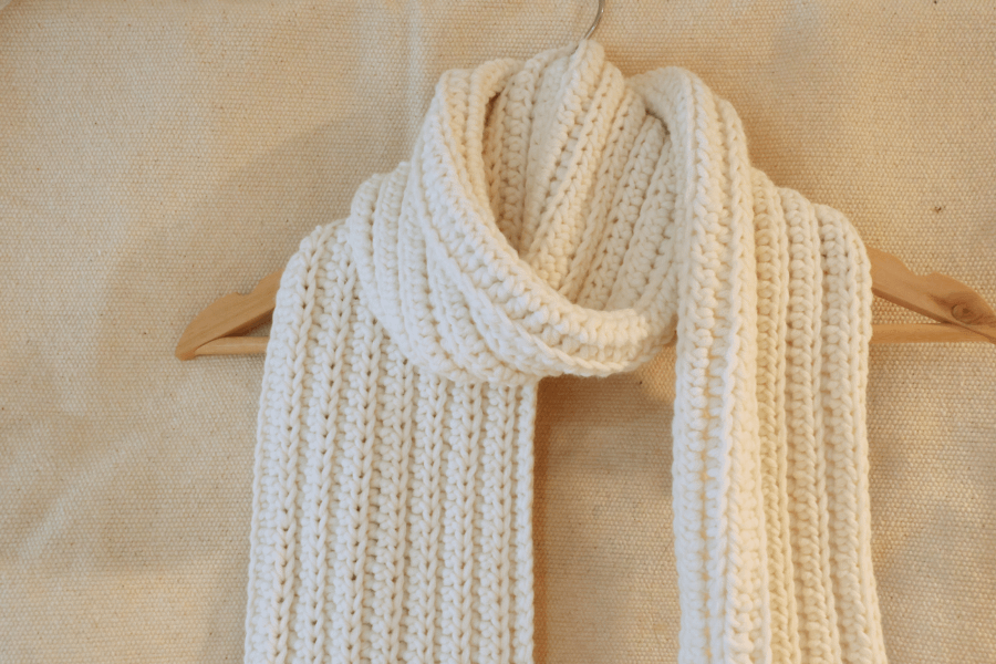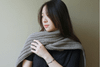 這次的圍巾,我們從選線、圖騰、到顏色,經歷了很長的測試與設計,不僅選用了歐洲的混紡羊毛線,相當厚實柔軟,還採用「中長編みのすじ編み」,你意想不到的針法排列,讓作品呈現如同棒針一般的柔軟質感,相當值得一學的作品,男女都適合披戴。