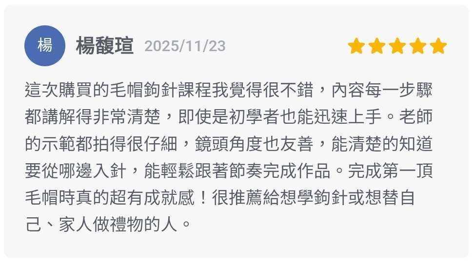 🔺此為超值影音材料包課程,購買後能獲得『教學影片』+『毛線』,下單後,請務必填寫好正確姓名、手機、地址,方可幫您寄送到府。若需寄到超商,請於地址欄位填寫 「全家」or「7-11」,以及門市名稱。如「7-11長津門市」,或是「全家龜山門市」,就能超商取貨。(限全家、7-11)