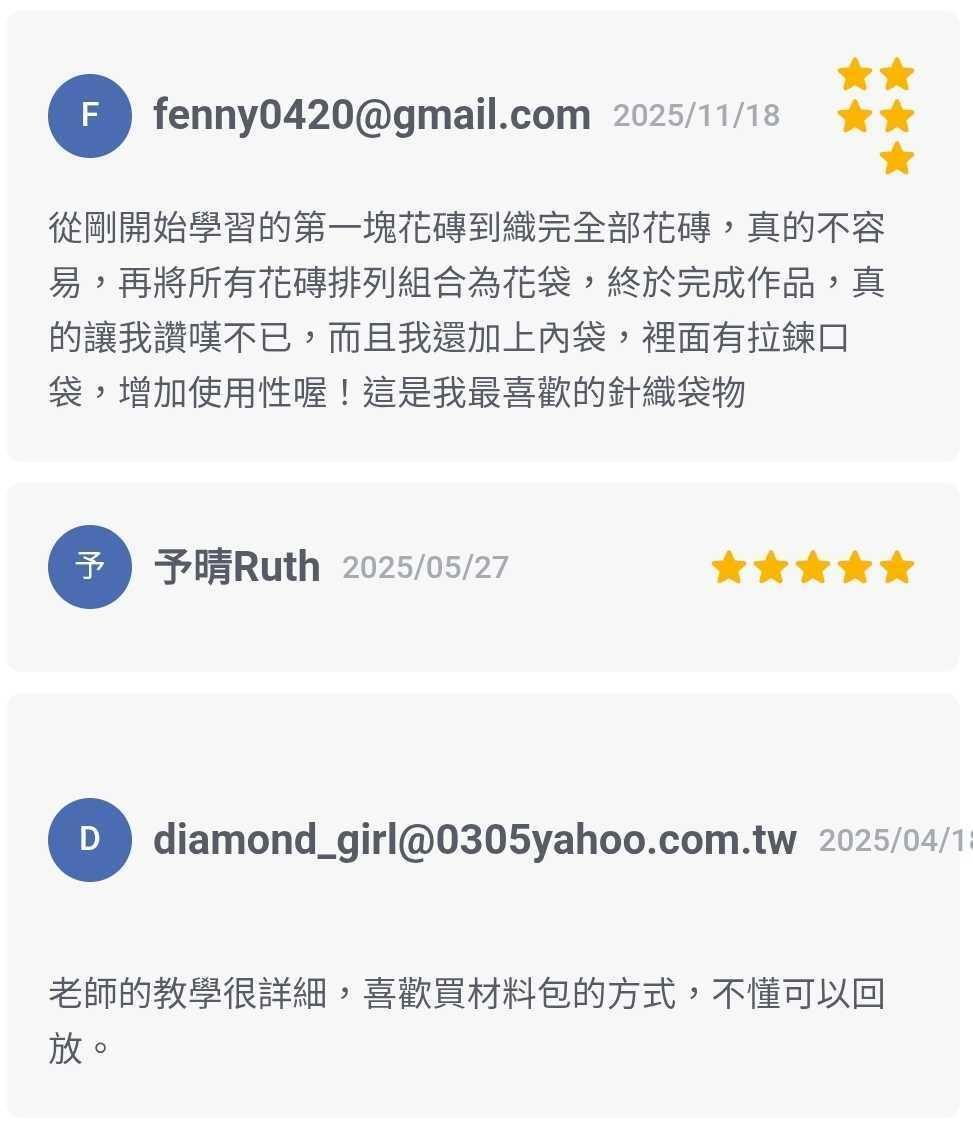 🔺此為超值影音材料包課程,購買後能獲得『教學影片』+『毛線』,下單後,請務必填寫好正確姓名、手機、地址,方可幫您寄送到府。若需寄到超商,請於地址欄位填寫 「全家」or「7-11」,以及門市名稱。如「7-11長津門市」,或是「全家龜山門市」,就能超商取貨。(限全家、7-11)