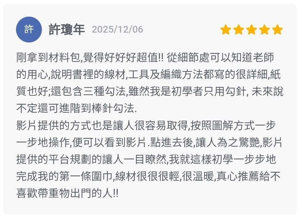 ▪️材料包內含三種圍巾款式的教學影片,讓購買的同學,一次獲得三種織圖+三款影片,是老師親自拍攝給同學的最大回饋,