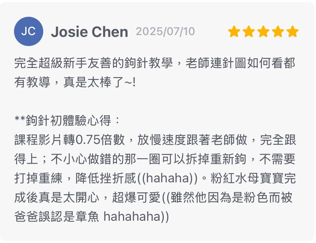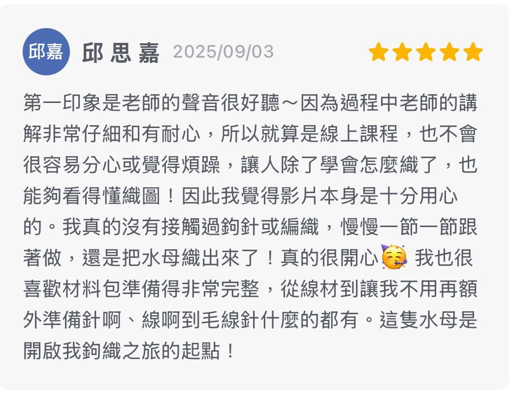 * 打造友善、客製化的多元課程,並推出 isk系列編織材料包,搭配詳細的影像教學,期許每個人都可以在無壓的環境中快樂編織。