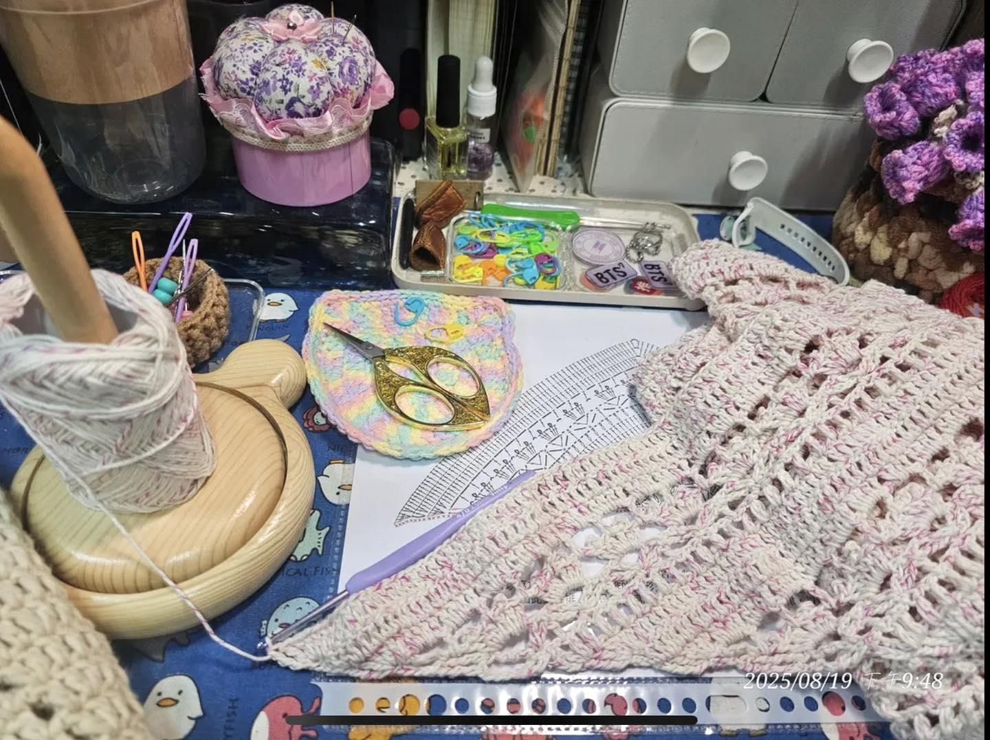 2025.08.19 < 編織日記:織友tingfei的小桌子,謝謝妳說越織覺得越美好喜歡🥰>