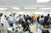大家依然穿著短袖、研究著秋冬的作品,認真仔細。