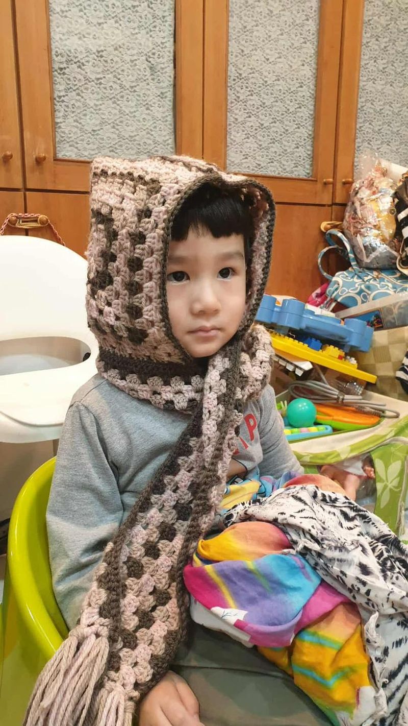🌳毛線森林,isk-034,有帽子的花漾圍巾,材料包+教學影片,馬上開始學習網址:https://yarnforest.waca.tw/product/detail/2405408
