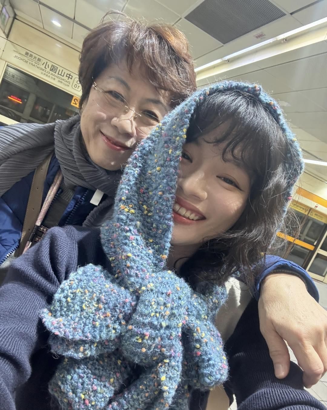 👌媽媽剛織好的禮物,即使在捷運站也要馬上戴上